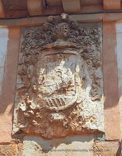 entre los escudos: AQ(U)I IACE UIDAS/ PASCUAL Q(UE) EL/ OUEND L(A) AQ(I) L(A) MIS(A)/ LIDIAN SUS ARMAS.