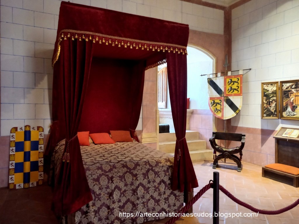 Al otro lado del paje, el escudo de su mujer, María Portocarrero.
